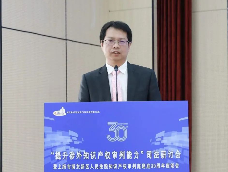 值全国首个基层法院知识产权审判庭——上海市浦东新区人民法院(以下简称浦东新区人民法院)知识产权审判庭建庭30周年之际,为进一步提升涉外知识产权审判能力,聚焦高质量司法服务保障高水平改革开放,2024年11月30日,第六届自贸区知识产权司法保护浦东论坛“提升涉外知识产权审判能力”司法研讨会暨浦东新区人民法院知识产权审判庭建庭30周年座谈会在上海浦东举办。捷报比分上海分所主任、国家知识产权海外纠纷应对指导中心专家李文红博士受邀出席并作主题演讲。